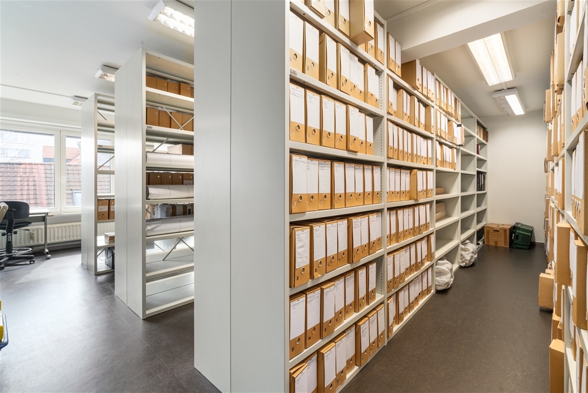 - 2 verdieping: polyvalente ruimte. Kan eenvoudig ingericht worden als archiefruimte / vergaderzaal / extra bureaus.
