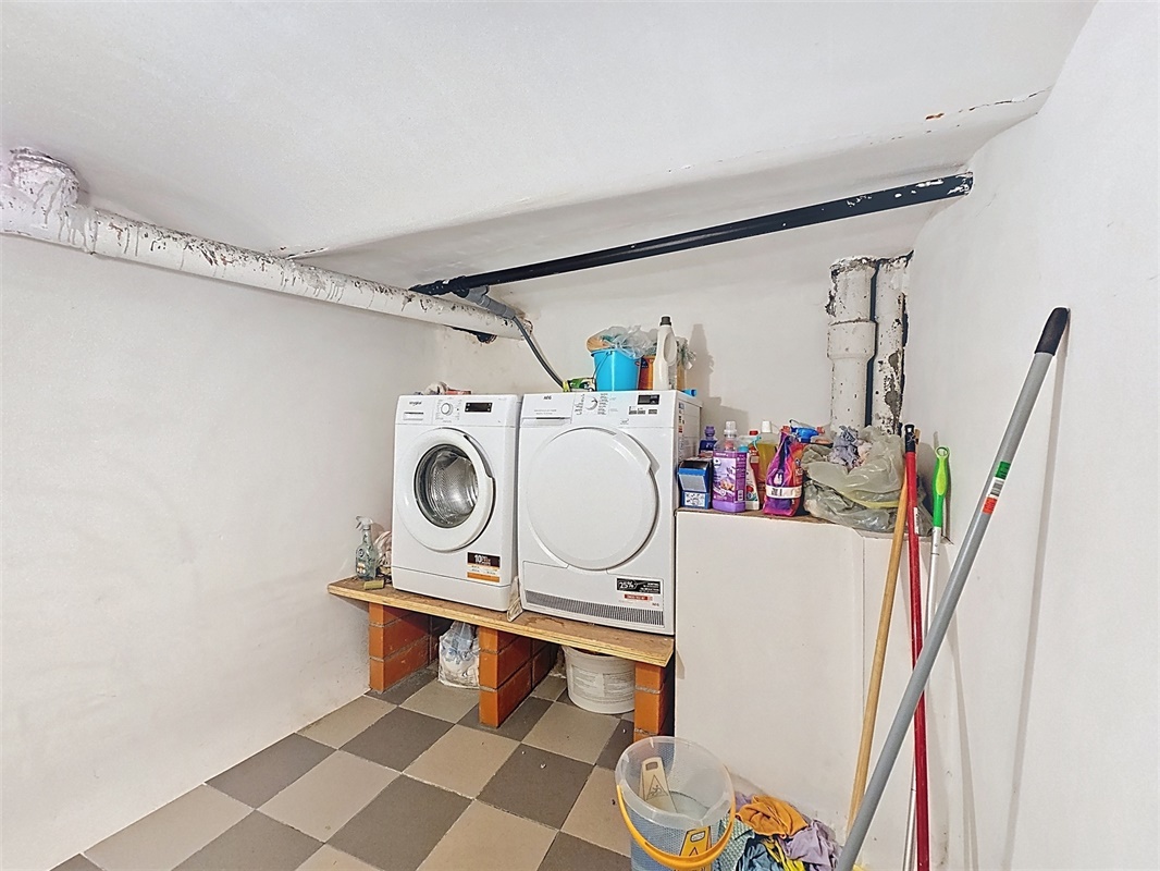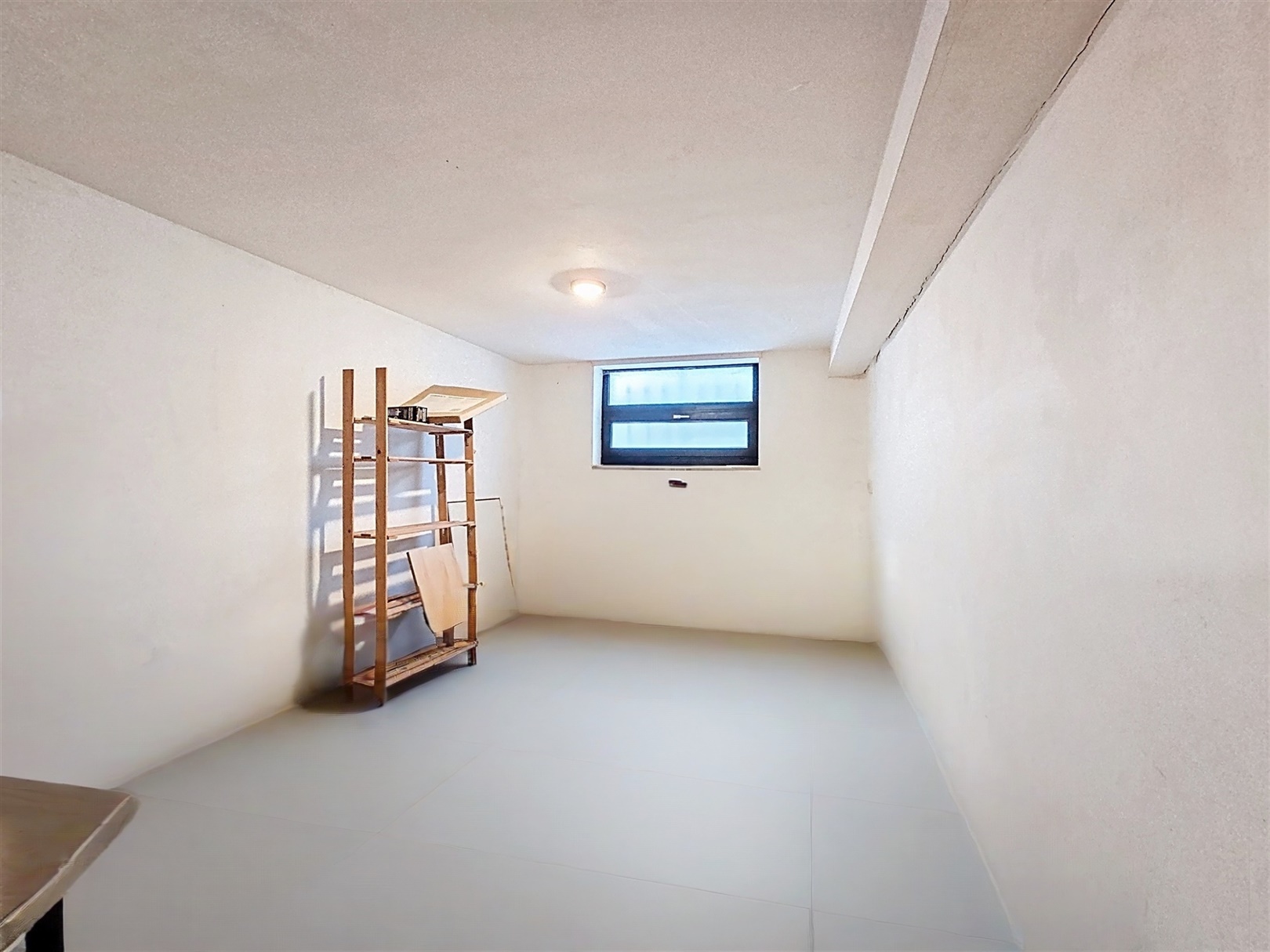 De kelderverdieping kan polyvalent gebruikt worden, bv. bureel of berging.