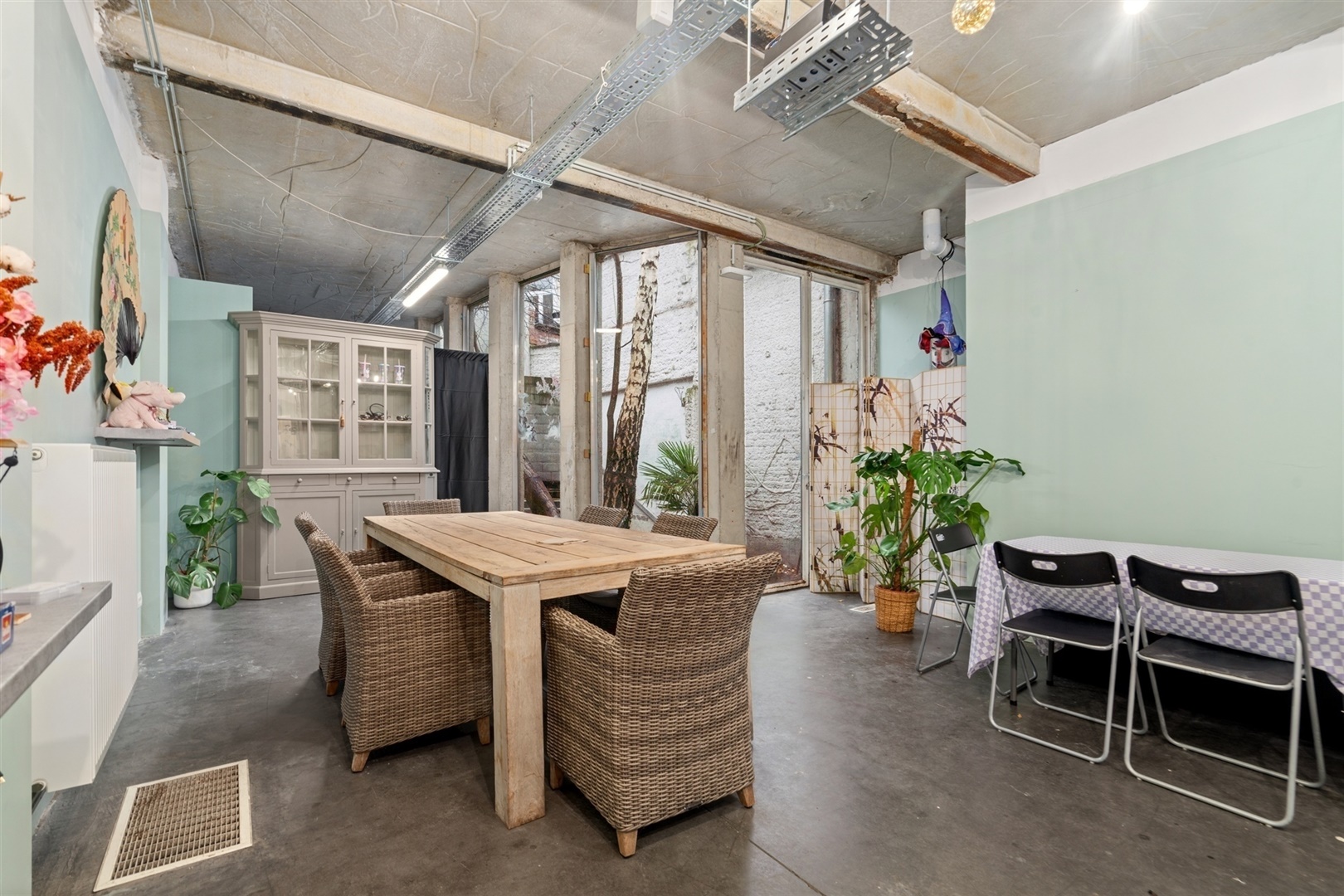 Met een oppervlakte van circa 145m² biedt dit pand volop mogelijkheden voor diverse concepten (horeca, kantoren, kunstgalerij, ...). De ruimte is op gevat als één groter geheel, maar makkelijk op te splitsen in verschillende zones. Er is ook een buitenruimte/patio van 17,5m².